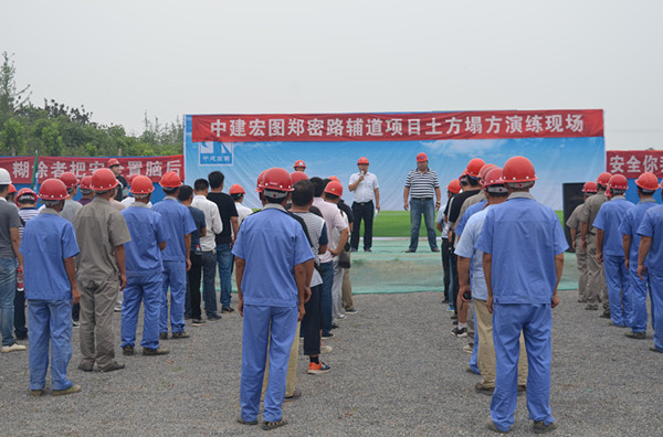 為增強(qiáng)現(xiàn)場(chǎng)人員的安全防范意識(shí),提高妥善應(yīng)對(duì)突發(fā)事故的能力,7月5日,市政工程建設(shè)管理中心組織參建單位100余人,在鄭密路輔道工程現(xiàn)場(chǎng)舉辦了深基坑塌方事故處理相關(guān)科目的應(yīng)急救援演練活動(dòng)。