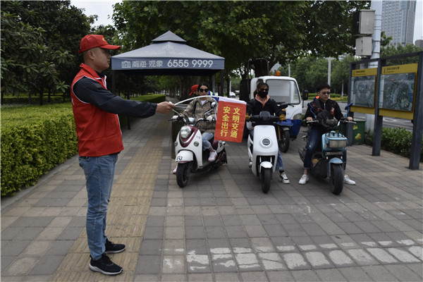 此次活動(dòng)分為上午8:00—9:00,下午18:00—19:00兩個(gè)上下班高峰時(shí)段進(jìn)行,一組四人,每天兩組志愿者輪流執(zhí)勤。志愿者們頭戴小紅帽,身穿紅馬甲、手持“文明出行、 安全出行”小紅旗,在黃河?xùn)|路眾意西路交叉的四個(gè)路口處分別進(jìn)行引導(dǎo)活動(dòng),通過(guò)舉落小紅旗,引導(dǎo)行人通過(guò)斑馬線(xiàn)安全過(guò)馬路,勸阻橫穿馬路、亂闖紅燈等不文明行為,引導(dǎo)市民遵守交通法規(guī),文明行路、文明行車(chē)。集團(tuán)公司總經(jīng)理助理祁紅軍同志身體力行,帶領(lǐng)志愿者們一同維持交通秩序,對(duì)行人、非機(jī)動(dòng)車(chē)闖紅燈時(shí),進(jìn)行耐心勸告;對(duì)市民不在白線(xiàn)外等候時(shí),給予及時(shí)糾正,引導(dǎo)市民養(yǎng)成良好的出行習(xí)慣,提高過(guò)往行人文明出行和交通安全意識(shí)。
